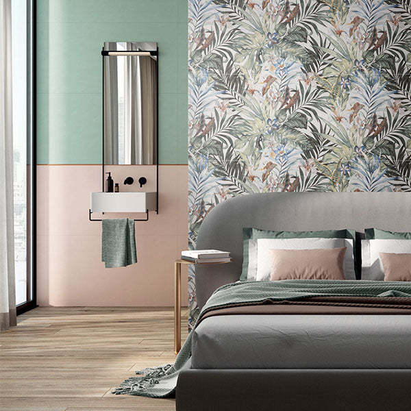 This refreshing shade can be paired with other Wide&Style Mini plain tiles for a layered look or combined with Foliage, Caribbean or Romantic decor tiles to enhance a botanical theme.