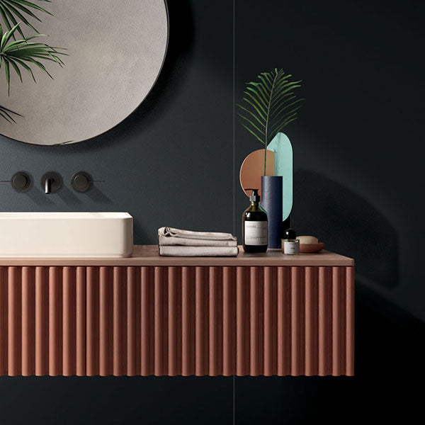 Sleek and contemporary, the ABK Chrome Black tile in 60 x 120cm adds effortless drama. It's natural finish delivers versatility with edge - suitable for bold feature walls or dark, sophisticated floors. Sharp, rectified edges complete the look. Also available in white.