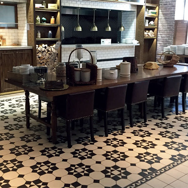 Geometric floor tiles are part of Britain's heritage and were used originally to ornament medieval churches and monasteries, and the homes of the aristocracy. Their popularity was enhanced in the 1830s when the young Queen Victoria came to the throne, and they soon became one of the hallmarks of the new Romantic Movement. Nostalgia for Victorian elegance led Original Style to recreate these classic floor tiles, using modern production methods combined with traditional clay and coloured stains.