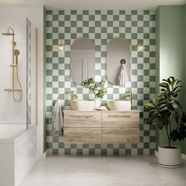 The bathroom images feature the Modena wall-hung basin unit with a Tabo worktop and washbowl.