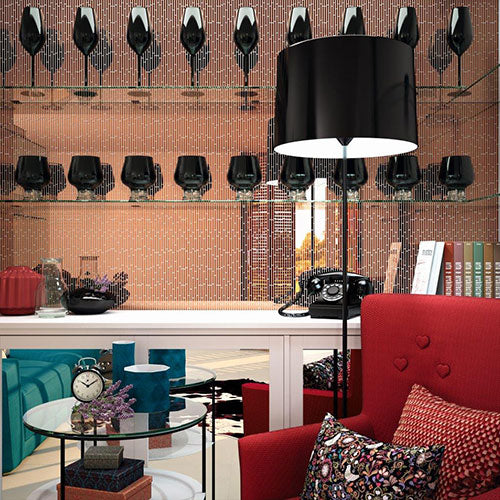 A sophisticated mosaic made with coppery mirror components that convey a feeling of spaciousness. Copper Mosaic Collection By Dune Ceramics.