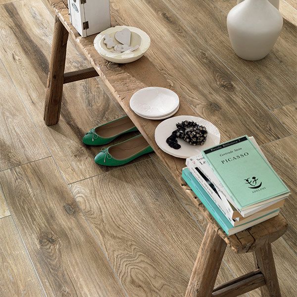 Wood effect is a highly sought-after style for flooring and it comes in many shades to imitate different types of wood. When used indoors, you can get away with almost any colour, but for outside, you might need to be more selective. The My Space Cognac tile is one which really suits outdoor use, looking naturally weathered and full of character.