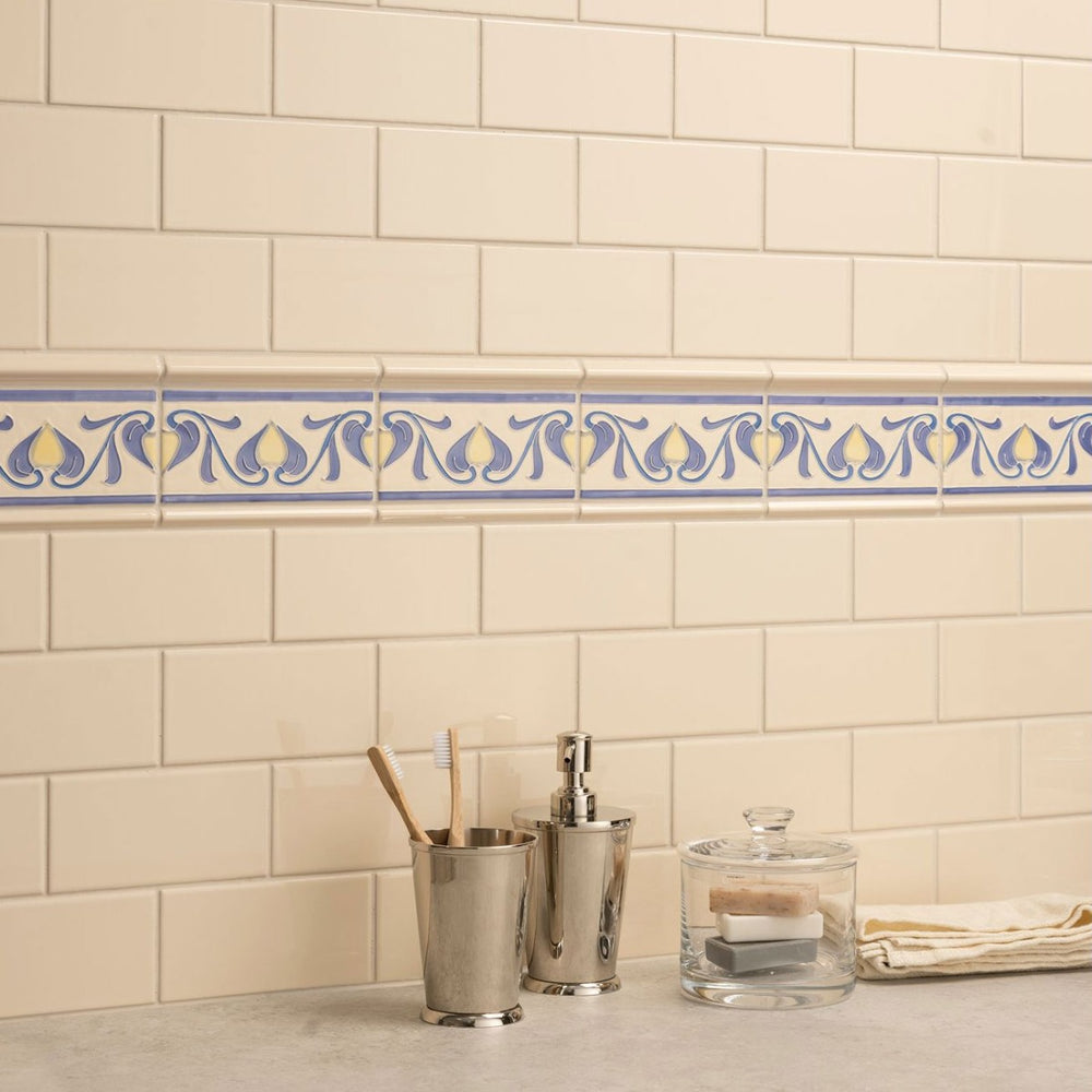 The County White Omega border is a soft off-white trim with a glossy glaze, giving tiled walls and floors a neat, finished look. Its curved design provides subtle definition without overpowering the space.