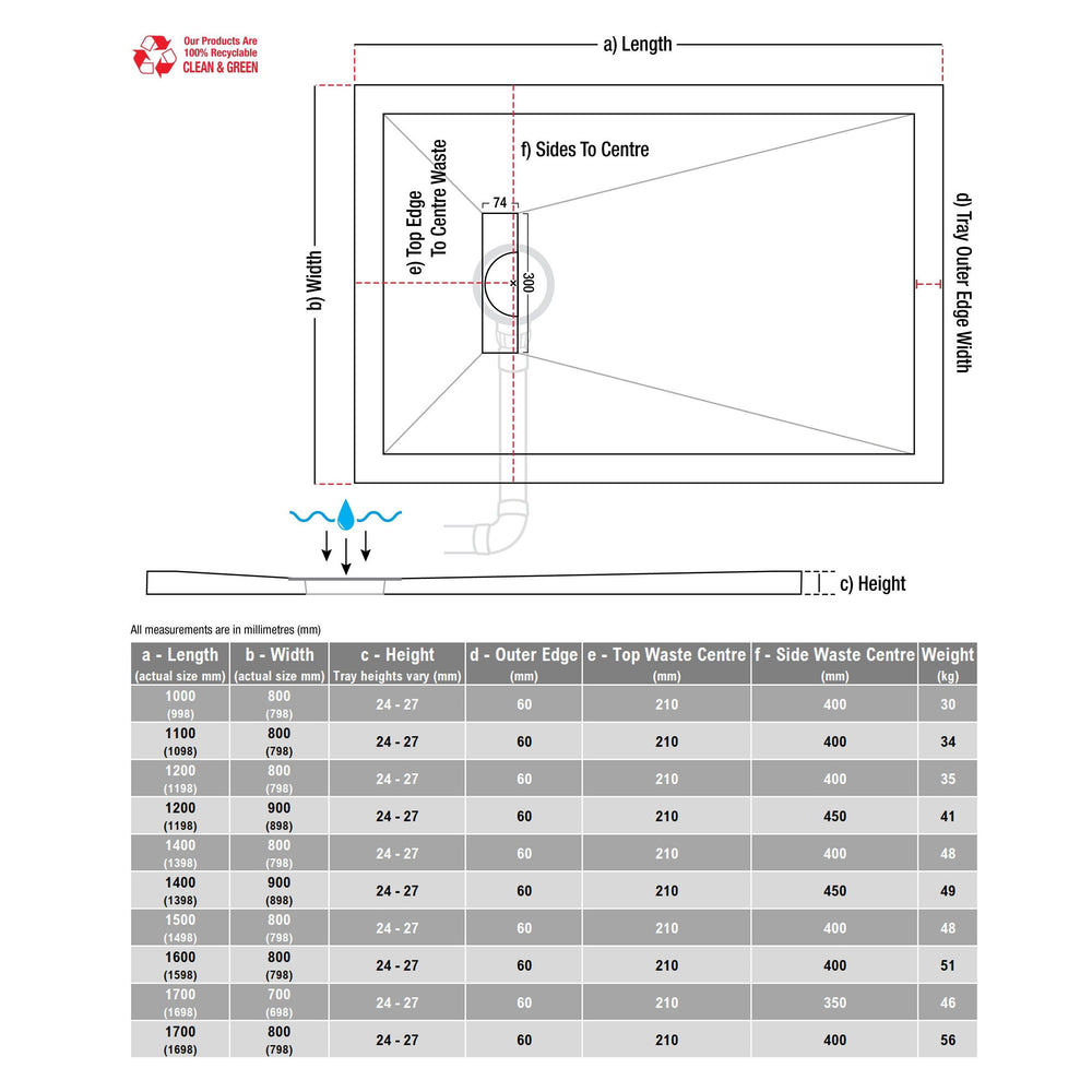 Tabo Splash Linear Ultraslim Rectangular Tray & Waste 1100 x 800mm