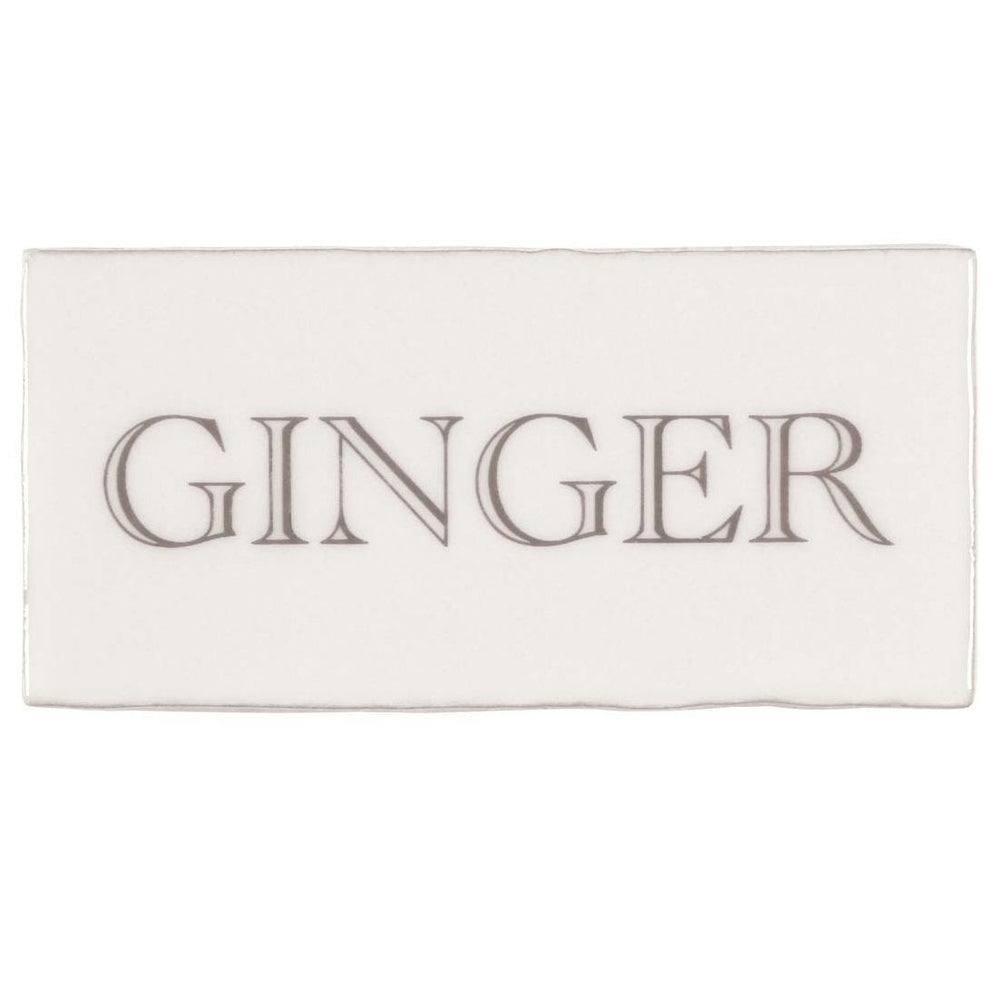 “Ginger in Grey on Cotton” offers a warm, homey feel. The copper-grey text contrasts gently with the cotton-white ceramic, rustic edges and natural surface variation giving that relaxed, country kitchen look. Works well above worktops or mixed with plain tiles for texture.