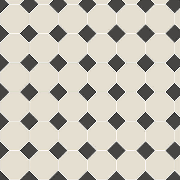 The classic octagon is combined with squares to create the Chesterfield pattern. It has the same layout as York pattern but the square is bigger (75mm/3”) and placed alongside the longer edges of the octagon.