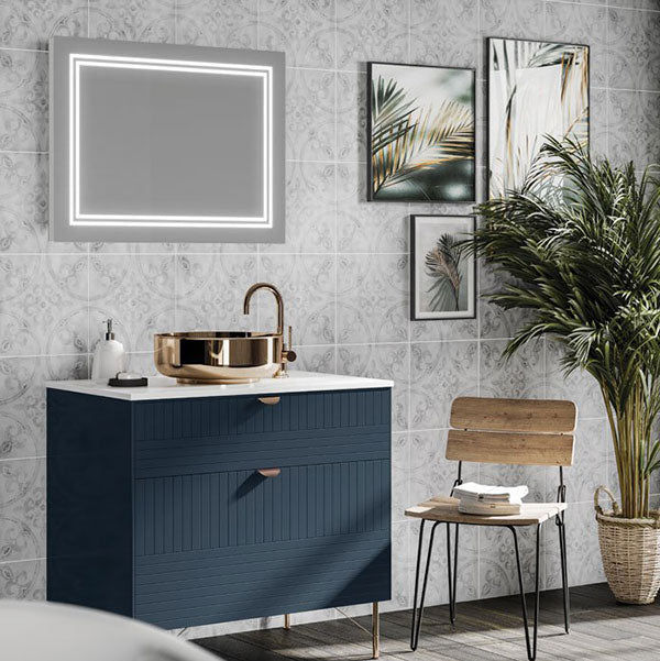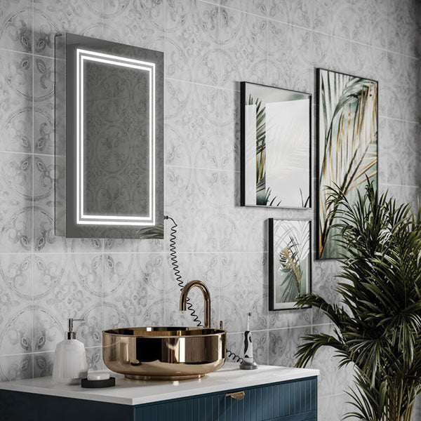 With its striking double LED border, the Boundary mirror will light up your bathroom routine perfectly. It is also fitted with integrated shaver socket and heated pad to reduce condensation.