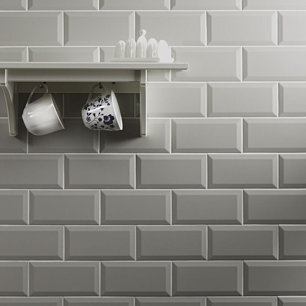 Metro Light Grey Gloss Ceramic Wall Tile 100 x 200mm