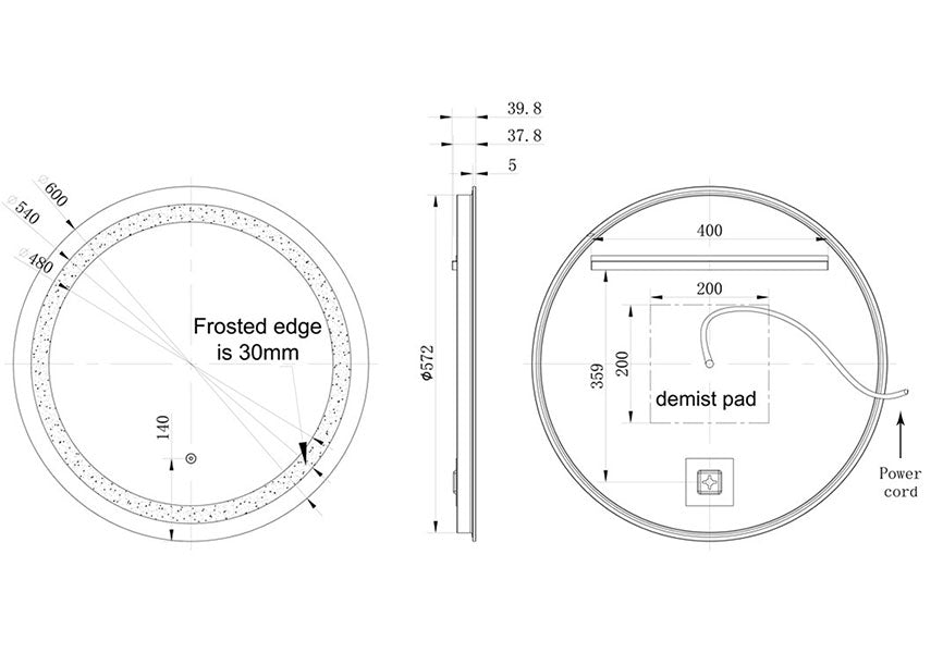 Front-lit circular mirror that can be adjusted from cool to warm light. Fitted with a demister pad to keep the mirror steam-free. Available in a selection of sizes.