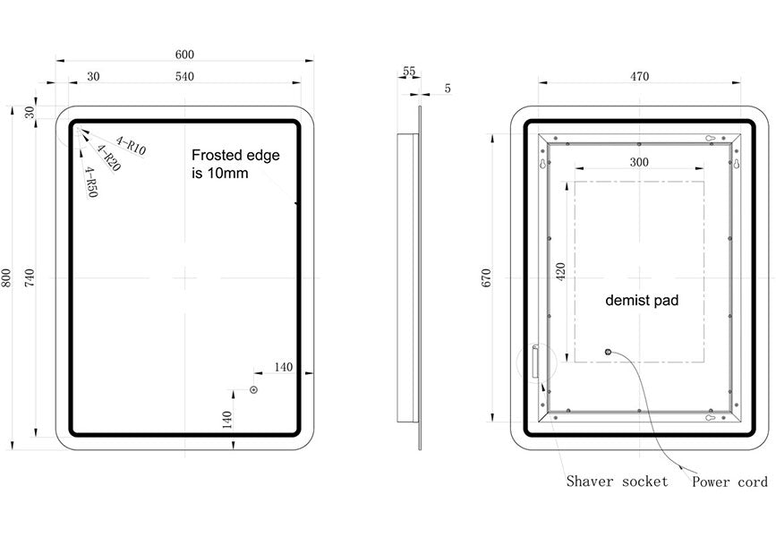 Tabo Motion Front-Lit LED Mirror 600 x 800mm