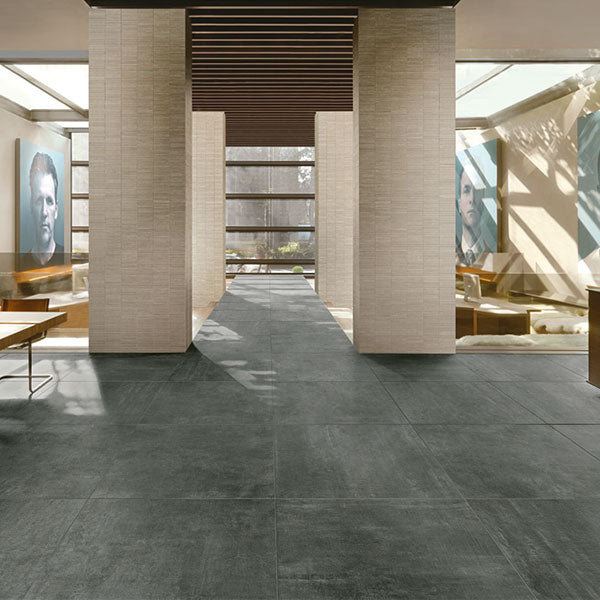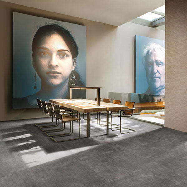Unicom Starker Icon range or concrete texture porcelain stone effect floor tiles.