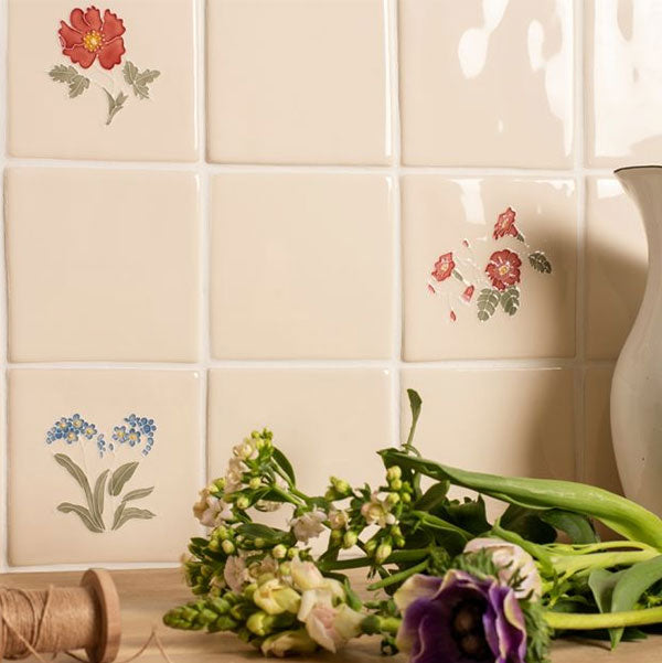 The Floral Tubelined Dog Rose tile features a delicate flower design in natural colours. There are six exquisite floral designs in this collection, each possessing its own captivating charm and whimsical allure.